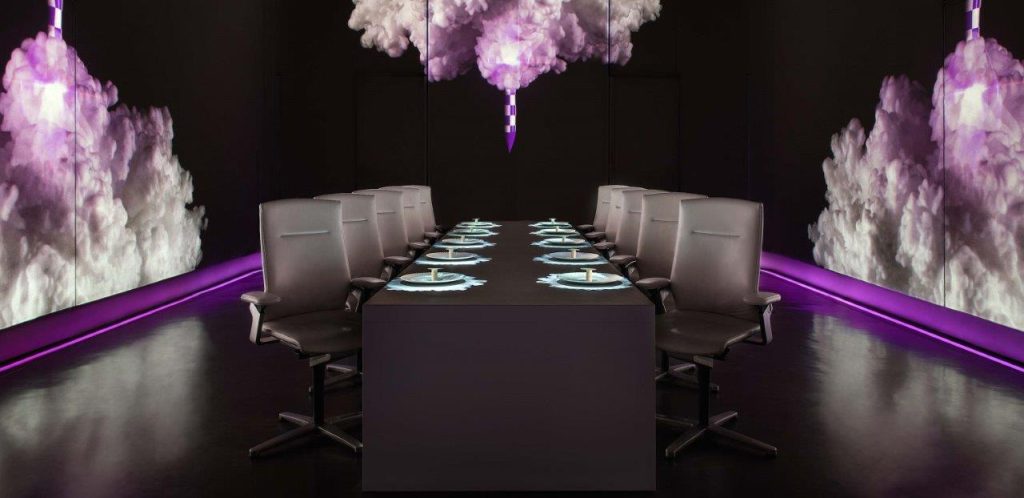 2. Ultraviolet by Paul Pairet – Shanghai, China – Experiența de aici aduce un plus de simțuri, cu proiecții pe perete, videoclipuri pe masa de dining, difuzoare de arome și sistem de sunet. Fiecare fel de mâncare este asociat cu o experiență audio-vizuală, oferind clienților o atmosferă controlată meticulos. Această experiență culinară a bucătarului francez Paul Pairet a ajuns la public în 2012, după 15 ani de dezvoltare.