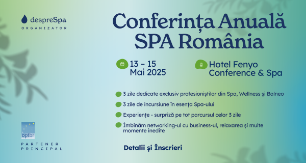 despreSpa.ro – portavocea pieței Spa din România, în parteneriat cu Organizația Patronală a Turismului Balnear din România (OPTBR), organizează Conferința anuală SPA România ediția 2025, în perioada 13-15 Mai, la Hotel Fenyo Conference & Spa, Miercurea Ciuc.