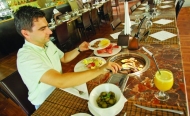 Toată mâncarea îți vine crudă la masă. Nu pentru că bucătarii ar fi în concediu, ci pentru că restaurantul îți oferă posibilitatea să-ți prepari carnea și legumele după bunul plac. „La noi, clienții au certitudinea că mâncarea e proaspătă, că nu e reîncălzită ori mutată dintr-o farfurie într-alta. Mai mult, e singurul loc din oraș în care vegetarienii își pot gratina legumele cum doresc”, a declarat Constantin Voloceai, administratorul restaurantului.