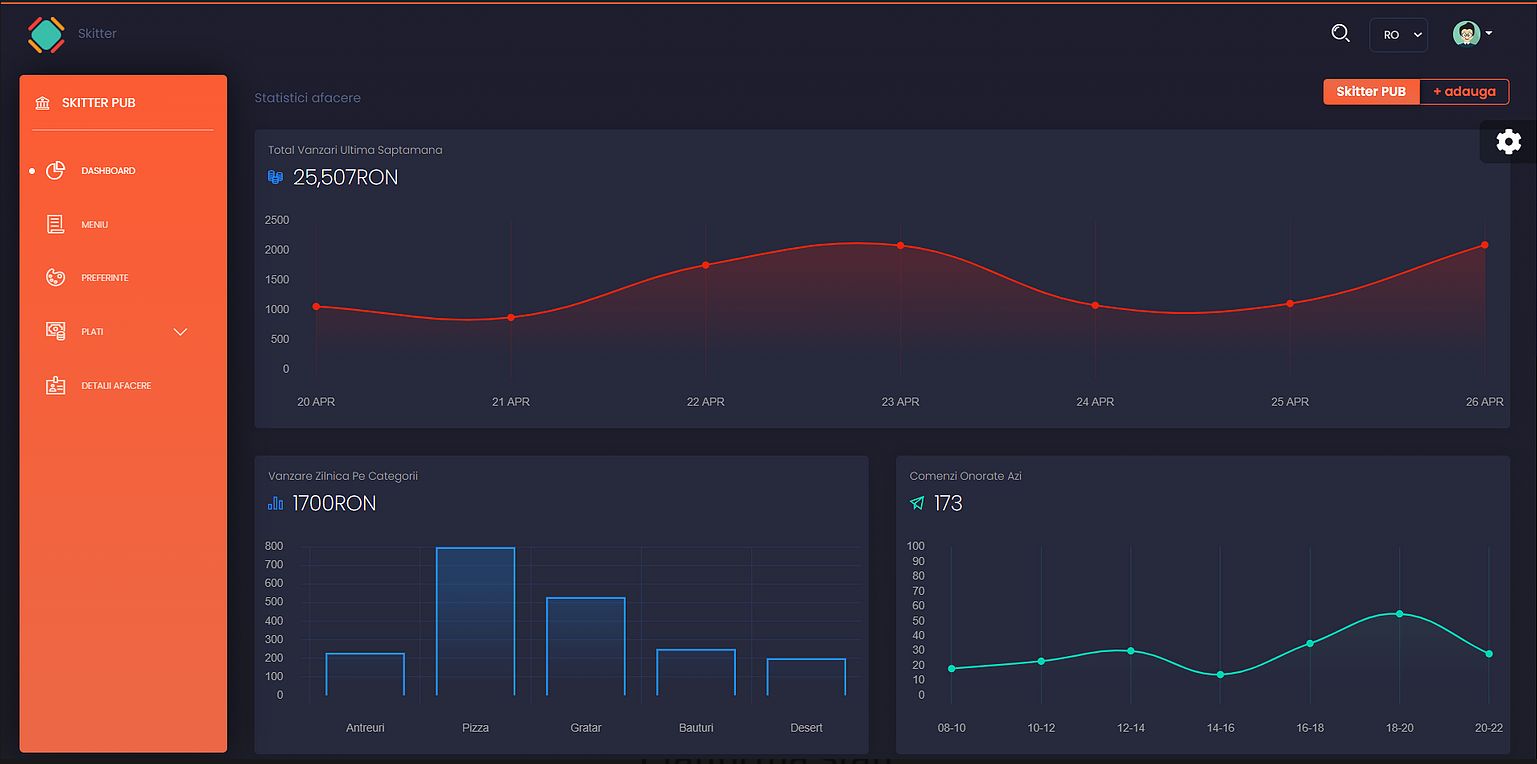 Prin intermediul aplicației pentru proprietar se acordă control complet asupra meniului, al comenzilor înregistrate prin aplicație, și de asemenea se oferă statistici asupra performanței afacerii.
