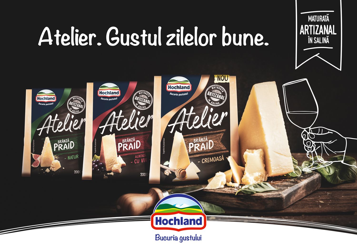 Hochland, liderul pieței de brânzeturi din România, relansează gama de brânzeturi maturate în Salina Praid. Astfel, la doi ani de la lansare, gama Brânză Praid va avea o nouă identitate vizuală și un nou nume – Atelier, totul sub conceptul creativ „Gustul Zilelor Bune”. Noua denumire surprinde caracterul artizanal, specific acestei game.