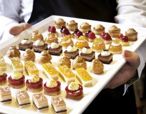 Pentru acest an, vă recomandăm Petit Four Prestige: 8 mini-deserturi, high-end, cu arome rafinate și varietate de forme, texturi și culori. Decorurile sunt realizate manual și asigură un aspect vizual artizanal și elegant, ceea ce le recomandă pentru Cocktail-Buffet.