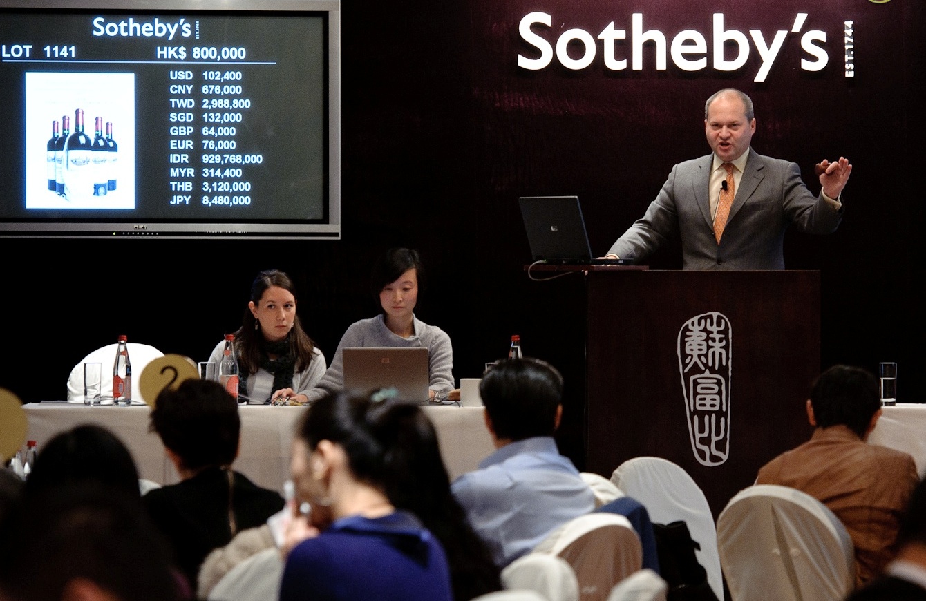 Licitatia mult asteptata, tinuta la Hotelul Mandarin Oriental din Hong Kong, a oferit 8.837 de sticle de vinuri clasice frantuzesti, inclusiv ceea ce expertii considera ca fiind cele mai bune vinuri albe de Burgundia aflate vreodata la vanzare in Asia. Estimarile de dinaintea licitatiei sugerau ca cele 746 loturi (in cele mai multe cazuri casete de 12 sau sase sticle, precum si sticle individuale) aveau sa ajunga la 3 milioane euro, dar sala de licitatie s-a umplut la capacitatea sa maxima, cu ceea ce Sotheby’s spunea ca au fost „oferte insufletite si joviale din toata Asiaâ€. Cumparatorii au licitat din sala, prin Internet sau la telefon.