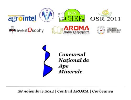 A doua ediție a Concursului Național de Ape Minerale se va desfășura vineri, 28 noiembrie a.c., de la ora 10.00, la Centrul Aroma din Corbeanca.