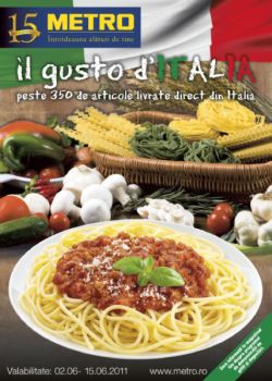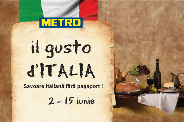În perioada 2 – 15 iunie, METRO Cash & Carry România organizează „Il Gusto d’Italia”, o campanie promoțională pentru produsele alimentare italienești. Evenimentul oferă demonstrații culinare, peste 350 de produse livrate direct din Italia, prezentate în catalogul Metro, precum și alte surprize menite să evidențieze cultura italiană a bunului gust, desăvârșit în toate aspectele sale, de la gastronomie și modă, la artă sau stil de viață.