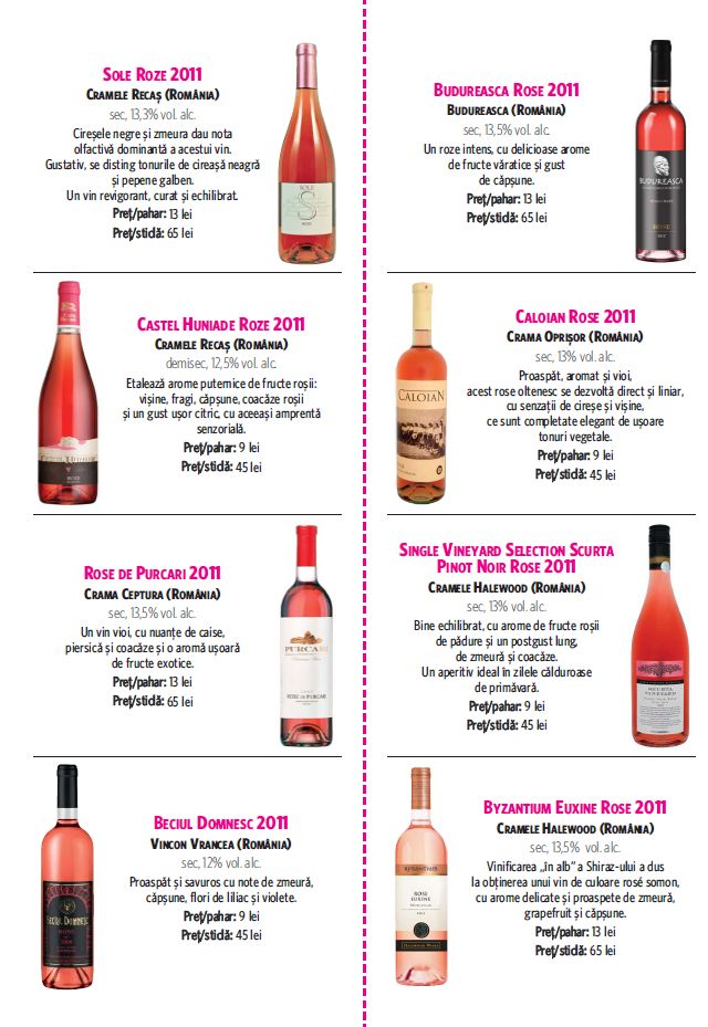 Astfel, începând cu 5 mai, și până pe 5 iunie, în București, Iași, Cluj, Brașov, Focșani și Craiova vor putea fi degustate 15 de sortimente de vin rose la prețuri speciale.Â