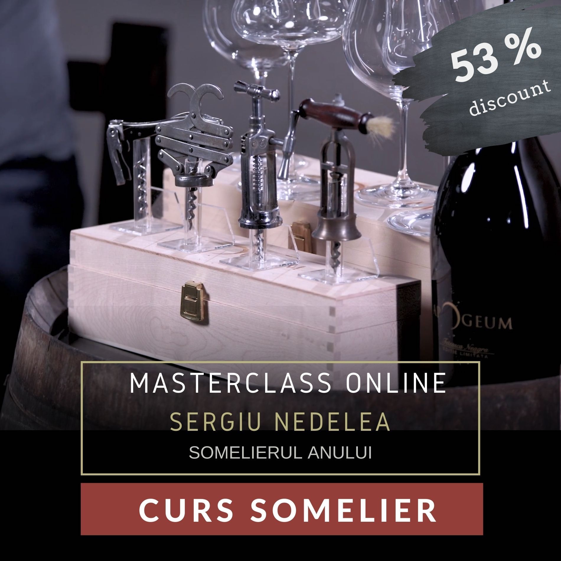 în Masterclass-ul „Secretele Vinurilor”, Sergiu Nedelea prezintă în mod structurat, pe lecții video, informații importante. Denumirea „Curs de Somelier” este generică, deoarece în online nu se pot asigura și experiențele degustărilor. Pentru aceasta se vor iniția Cursurile Certificate de Somelier, organizate de Winetaste School.