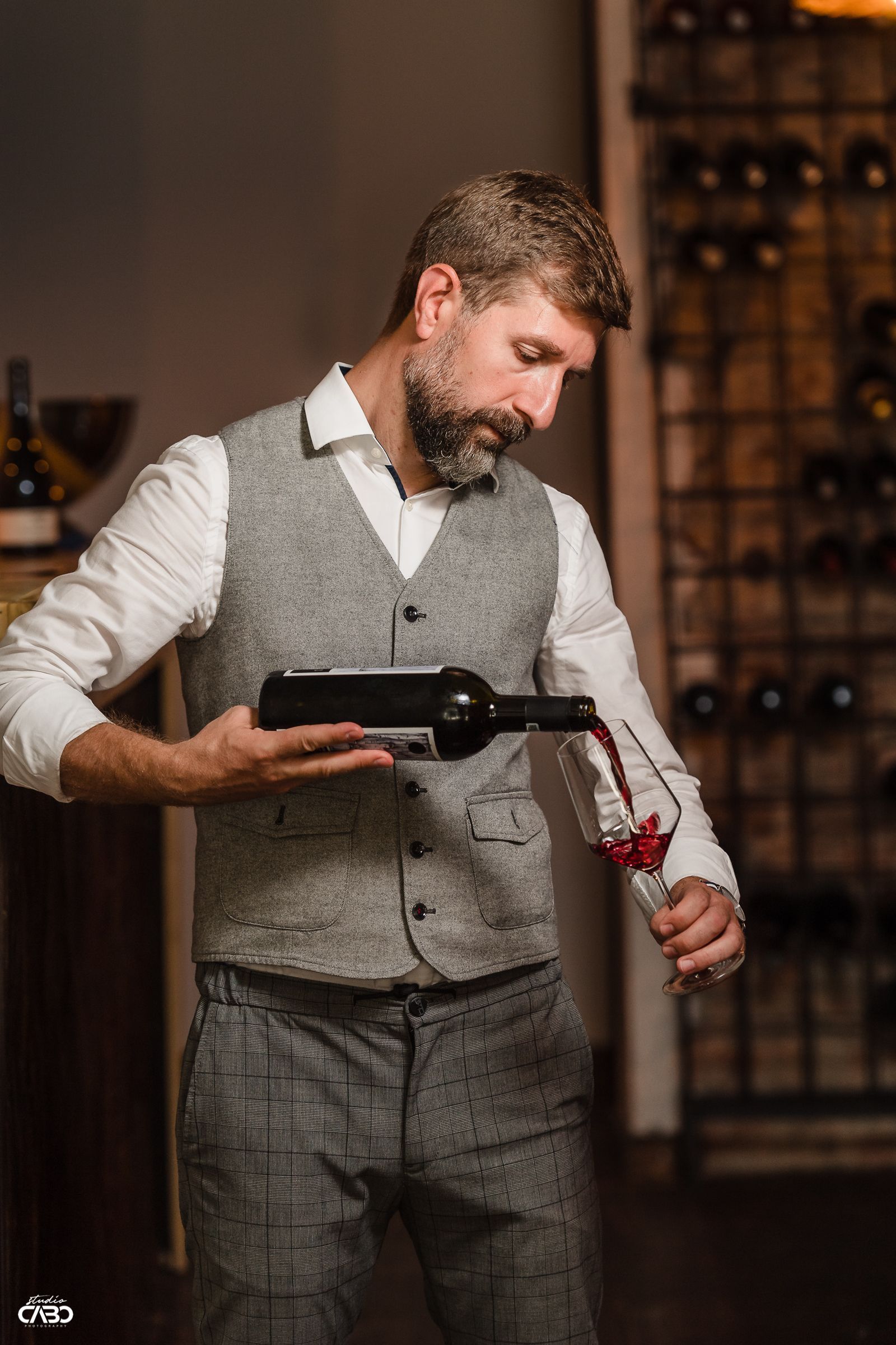 în primul rând, Somelierul prezintă eticheta de pe sticlă – oaspetele citește denumirea vinului, crama și anul. Dacă nu are obiecții, Somelierul desface sticla de vin.