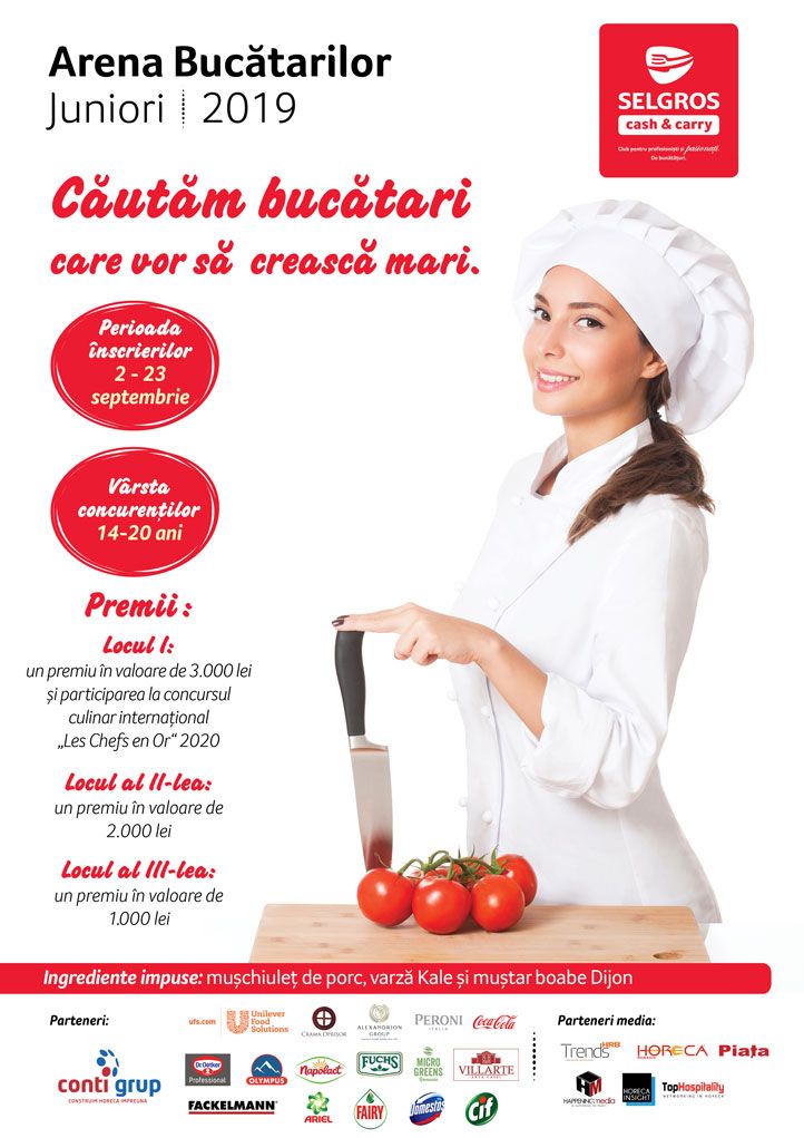 Pasiunea pentru gastronomie nu are vârstă! Dacă ai între 14 și 20 de ani*, ești elev la o școală, academie de profil gastronomic sau lucrezi deja într-o bucătărie, Selgros Cash&Carry te invită să te înscrii la competiția Arena Bucătarilor Juniori 2019.