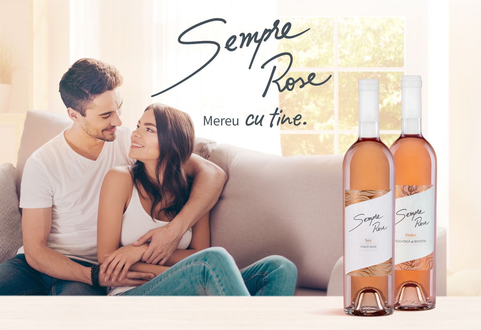 Obținut din struguri culeși manual din podgoria Huși, brandul Sempre Rose este compus din două soiuri: Pinot Noir sec și Busuioacă de Bohotin dulce. Pinot Noir este un vin sec, catifelat, proaspăt, cu note de citrice și cireșe ce poate fi usor asociat cu brânzeturi, paste, risotto, fructe de mare și pește sau chiar cu preparate din bucătăria asiatică sau orientală.