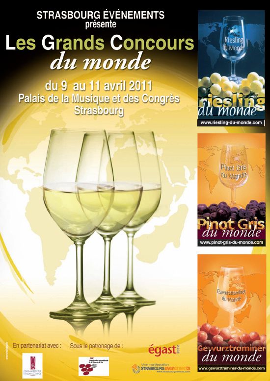 Concursurile internaționale pentru vinurile albe Gewürztraminer, Pinot Gris și Riesling din Franța, se va desfășura în perioada 9-11 aprilie 2011 la Congress Centre Strasbourg, sub patronajul OIV.