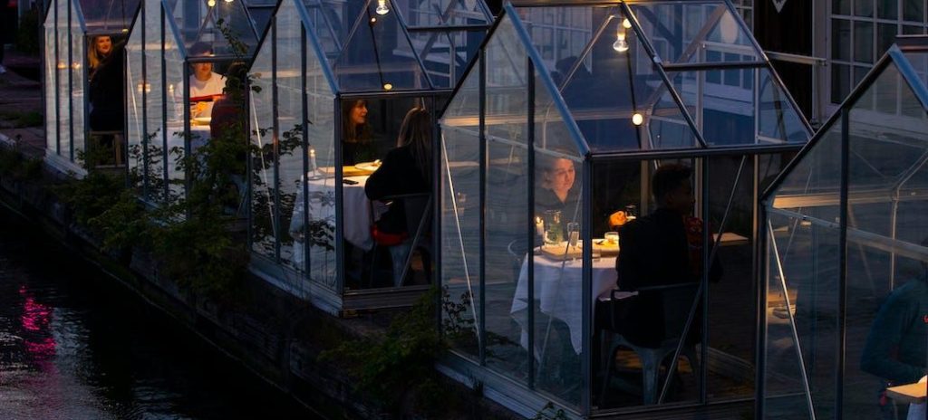 Pentru spațiile interioare, lucrurile sunt mult mai provocatoare. în timp ce la noi în țară zonele de mese din interioarele locațiilor stăteau închise, în alte țări europene beneficiarii faceau deja tot posibilul să găsească noi soluții ca să recupereze clienții vechi, în timp ce încearcă să asigure atât distanțarea socială pentru a-i proteja de eventuale contaminări și, în același timp, să reușească să servească cât mai multe persoane și să atragă altele noi.