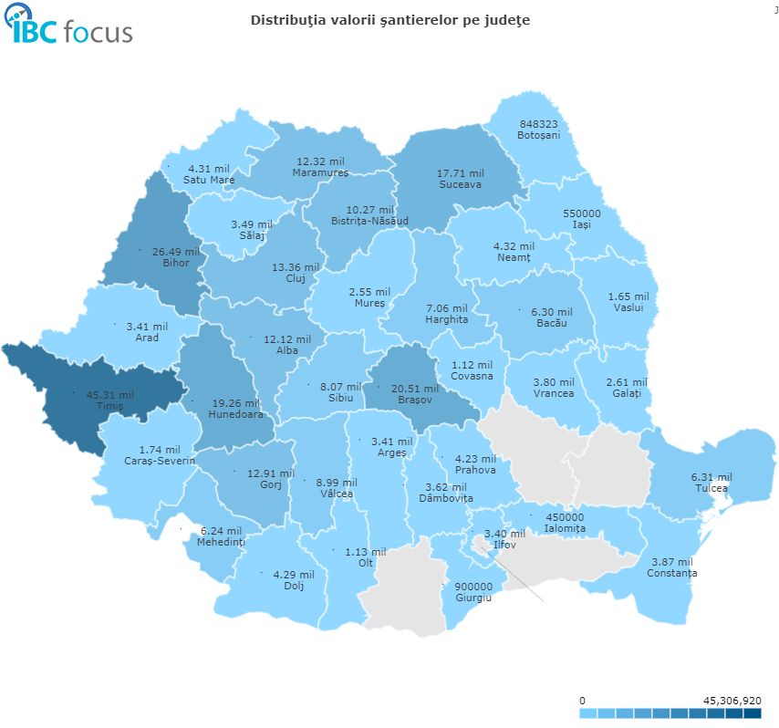 Dacă județul Bihor este fruntaș în ceea ce privește distribuția numerică a investițiilor în pensiuni, în ceea ce privește distribuția valorică a proiectelor județul Timiș este lider absolut, cu șantiere în valoare de 45,31 milioane de lei. Brașovul, Hunedoara și Bihorul completează topul județelor cu cele mai scumpe investiții, cu sume cuprinse între 19.26 milioane de lei și 26,49 milioane de lei.