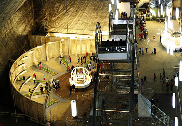 Salina Turda din inima Ardelului este acum un adevarat parc de distractii, cu mese de biliard, terenuri de minigolf, piste de popice, roata carusel si zone special amenajate pentru copii. Pe langa acestea, in subteran s-au mai amenajat lifturi panoramice, un amfiteatru cu scaune incalzite, un balcon circular suspendat la 40 de metri deasupra salii sapate in sare, un centru de tratament modern, iar la suprafata a fost reabilitata intrarea in mina si s-a modernizat unul dintre drumurile de acces. in enorma cavitate subterana ramasa dupa incheierea exploatarii s-au investit 5,8 milioane de euro (4,8 milioane de euro, din fonduri europene, restul, din bugetul consiliului local si al celui judetean).