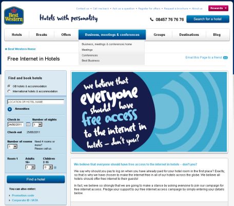 Cel mai mare grup hotelier independent din Marea Britanie, Best Western, a lansat o campanile la nivel național prin care încurajează internetul gratuit pentru oaspeții hotelurilor, după ce s-a constatat că acest serviciu ar putea aduce economisirea în sectorul hotelier britanc a peste 1,4 miliarde de lire sterline pe an.