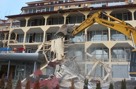 În cursul acestei dimineți, 27 decembrie a.c., autoritățile au început acțiunile de demolare la hotelul Histria din Mamaia, după ce proprietarii au extins hotelul fără autorizație de construire. „Demolarea extinderilor ilegale ale Hotelului Histria care a avut loc astăzi face parte din campania Ministerului Dezvoltării Regionale și Turismului de demolare a lucrărilor executate fără autorizație de construire„, se arată într-un comunicat de presă emis de MDRT.