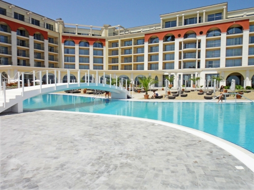 Oaspeții noului hotel de la malul Mării Negre au la dispoziție 156 de camere simple și duble și 12 camere Club, cu vedere spre mare sau spre terenul de golf. Pe lângă imensul centru SPA, complexul dispune de o suită de dotări impresionante: piscine interioare și exterioare, o plajă privată, centru de fitness, completate de restaurante Gourmet cu specific internațional și de un lounge Whisky&Cigar.