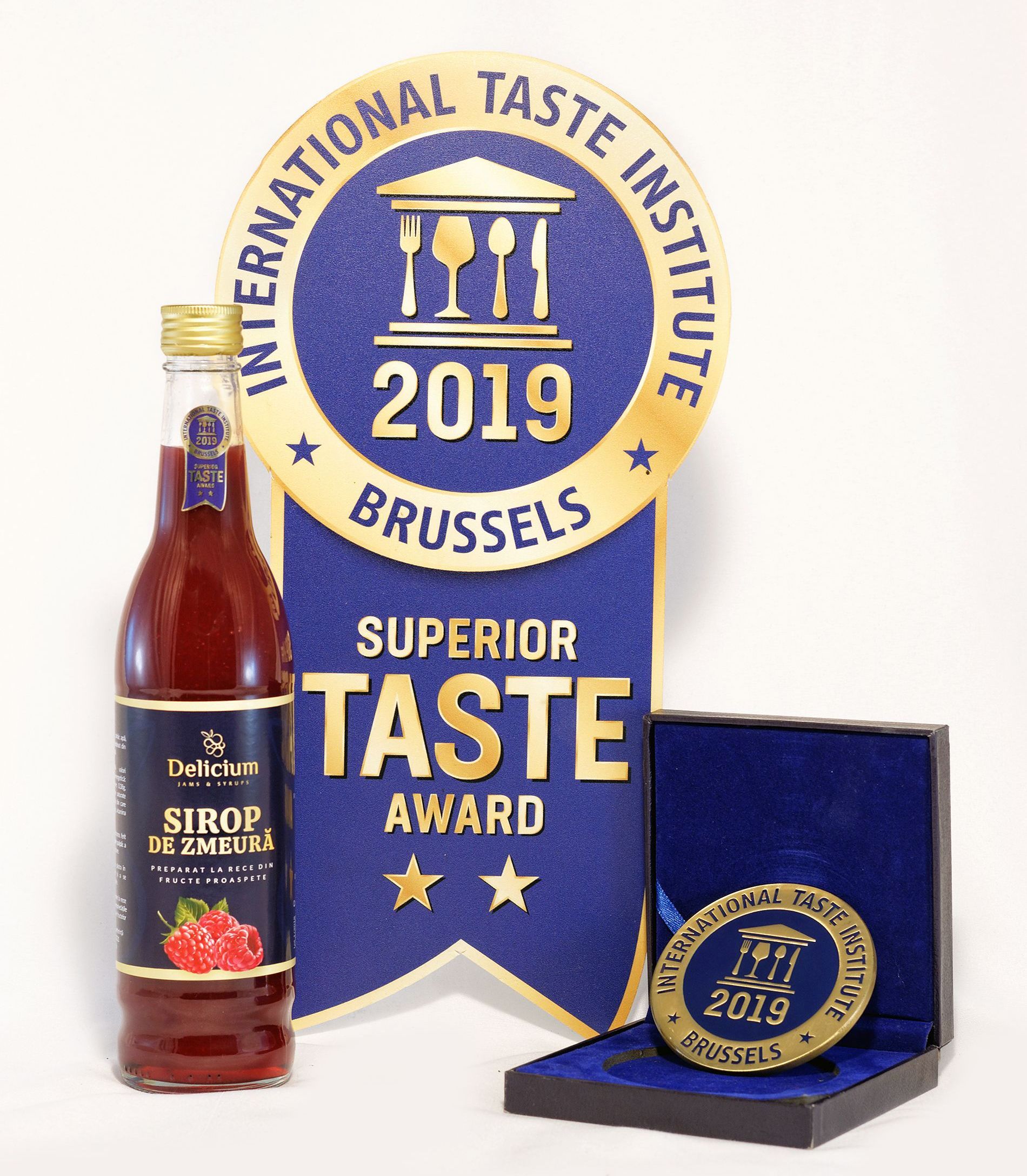 în același an, pentru a ne convinge, în primul rând noi dar și pe clienții noștri, de calitatea produselor noastre, am decis să trimitem siropul de zmeură, practic simbolul nostru, la International Taste Institute (ITI) Bruxelles, pentru a fi testat de 200 dintre cei mai înalți în rang bucătari și somelieri ai lumii. Bucuria nostră a fost culminată când în urma analizelor calității siropului am obținut pentru acesta 2 din maxim 3 stele Superior Taste Award 2019, considerate stelele Michelin ale alimentelor.