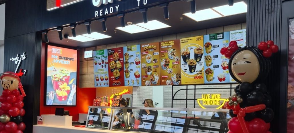 Noul CHOPSTIX se află în zona de food court din Electroputere și își așteaptă oaspeții cu toate hero product-urile din gama sa: Ramen cu vită, pui cu ciuperci, delicioasele box-uri fresh sau deserturi specifice Asiei.