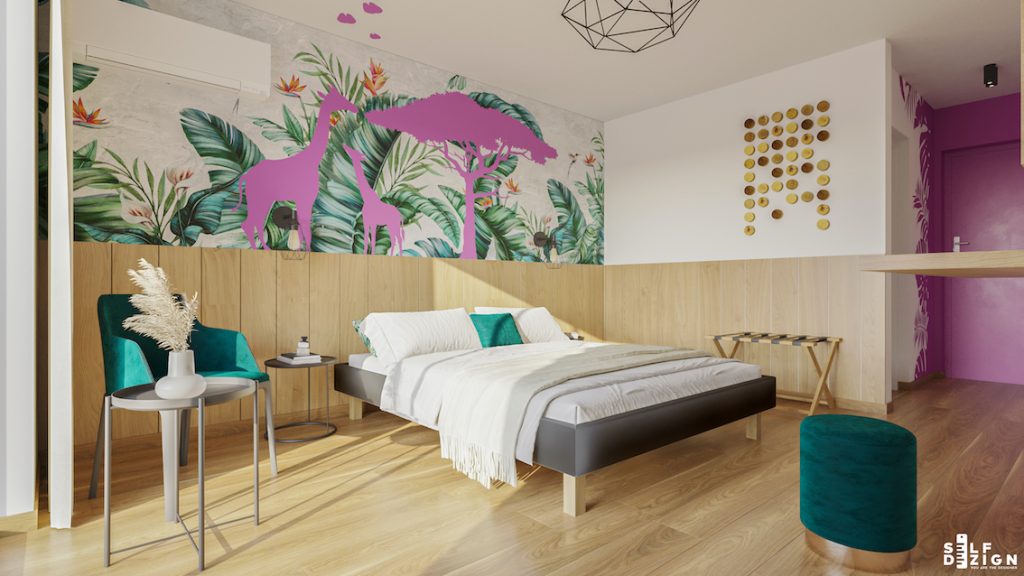Design-ul de inspirație tropicală al viitorului hotel a fost conceput de SelfDezign – un studio tânăr, cu un spirit cool și inovator.