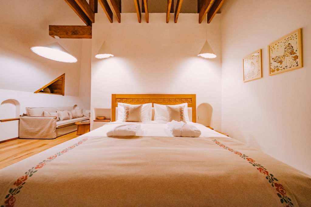 Proprietarii au lucrat predominant cu furnizori și branduri locale, care au contribuit la crearea unui spațiu elegant, exclusivist și echilibrat, menit să ofere relaxare și o stare de bine. Conceptul arhitectural îi aparține arhitectului Gabriel Georgescu, care, împreună cu echipa sa din București, a creat spații armonioase, în care elemente și culori naturale, de lemn, piese ceramice și piatră sunt completate de detalii tradiționale transilvănene, în culori îndrăznețe.