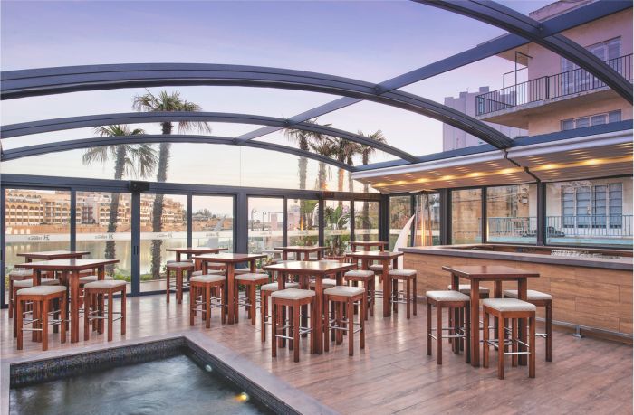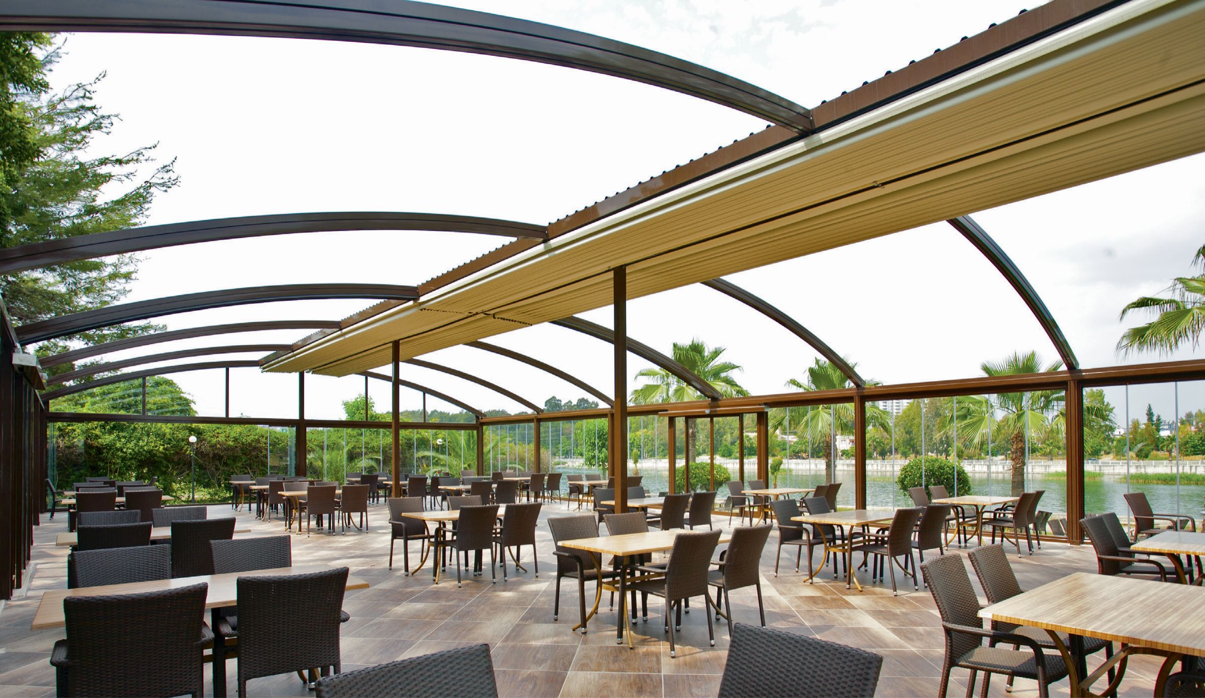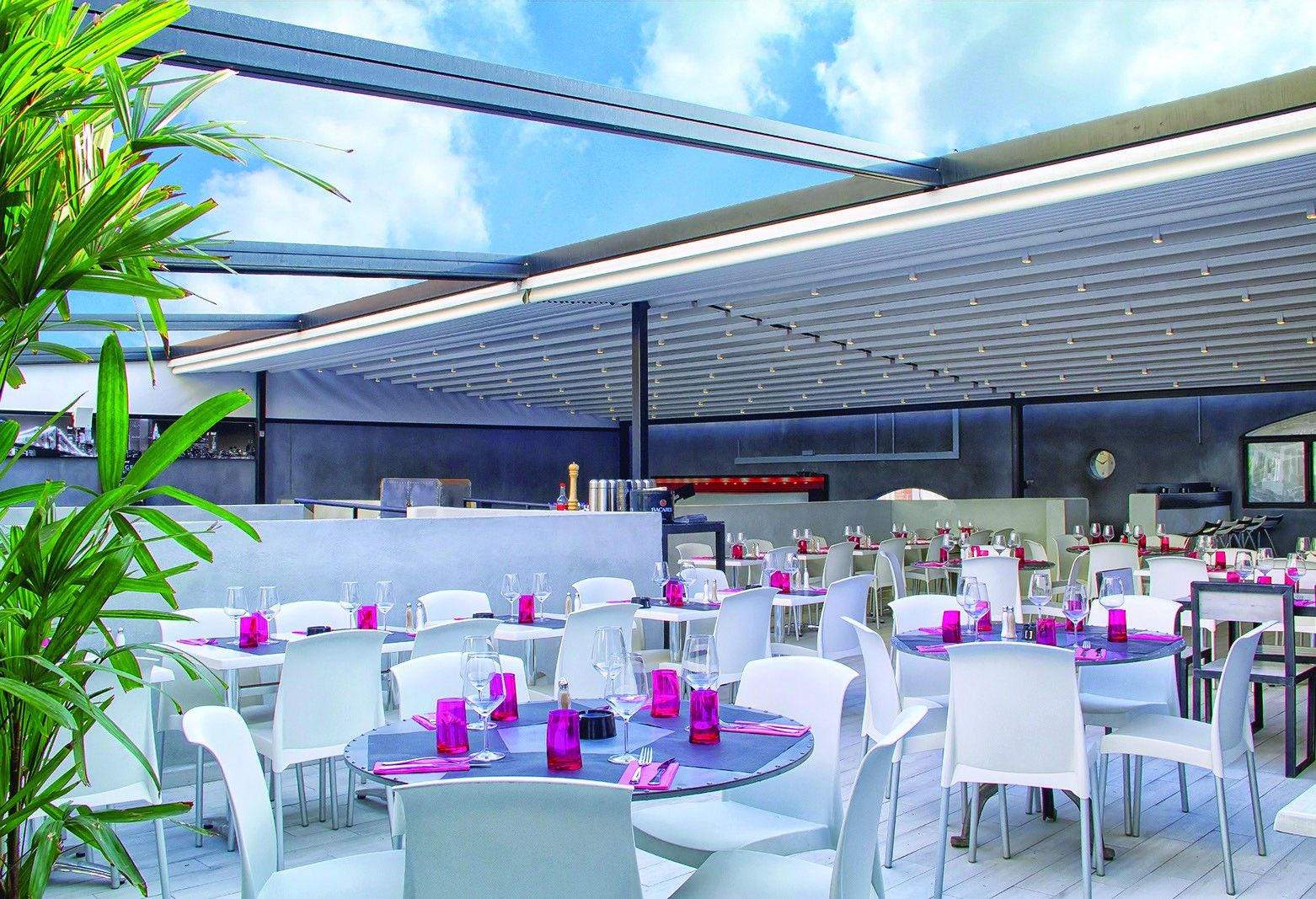 Pentru restaurante și cafenele, pergolele retractabile, împreună cu accesoriile sale (închiderile din sticlă, pardoseală exterioară, încălzitoare) oferă o perioadă mai lungă de funcționare a terasei, un design modern și o zonă pentru fumători. De asemenea, oferă transparență spre priveliștea din exterior și confort datorită acționării electrice a acoperișului retractabil și a închiderilor din sticlă.