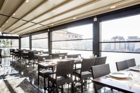 Al doilea element care vine în completarea terasei este închiderea automatizată cu sticlă de tip Panoramă. Acest sistem se închide și se deschide electric din aceeași telecomandă ca a pergolei. Prin apăsarea unui buton, foile de sticlă termopan al sistemului Panorama se vor lăsa în jos pentru a permite aerisirea rapidă a terasei. Acest element perfect pentru terase acoperă două probleme pe care acestea le întâmpină: problema fumatului pe terasă – deoarece acest sistem permite aerisirea rapidă atunci când este deschis – și problema menținerii unei temperaturi confortabile pe terasă, deoarece separă zona interioară de zona exterioară. Sistemul oferă și o vedere de poveste din interiorul terasei, datorită sticlei din care este compus.