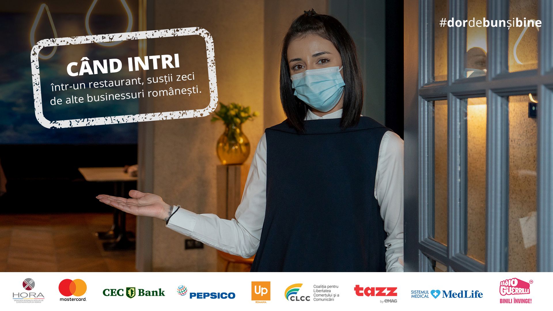 Ghidul este dezvoltat alături de specialiștii în servicii medicale din cadrul MedLife. Conceput alături de Mastercard, în parteneriat cu CEC Bank, cu sprijinul PepsiCo, Up România, Coaliția pentru Libertatea Comerțului și a Comunicării (CLCC) și Tazz by eMAG, proiectul este găzduit de platforma dedicată, www.dordebunsibine.ro, acolo unde sunt detaliate măsurile definite în cadrul Ghidului de siguranță în restaurante.