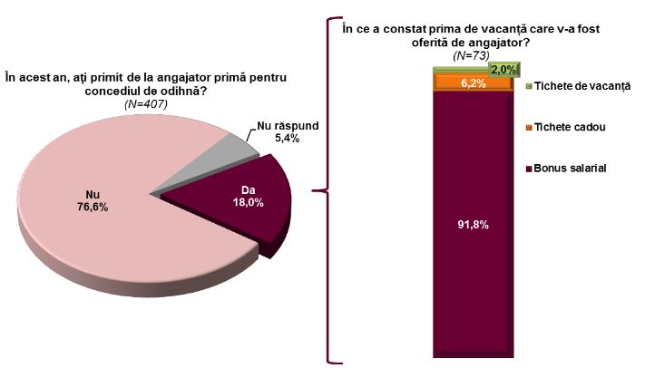 Pentru 18% dintre persoanele intervievate care au avut concediu de vară, această perioadă a venit cu beneficii extra – salariale. În cea mai mare parte a cazurilor acestea au constat în bonus salarial (91,8%).