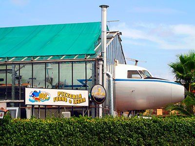 Transformarea Alta Quota Pizzeria poate fi asociată cu efectul de seră, glumesc clienții pizzeriei-avion care ajung să se înfrupte din deliciile italiene din apropierea Aeroportului Fiumicino din Roma, Italia. Și asta deoarece pizzeria-avion a fost construită în jurul unei aeronave metropolitane dezafectată Italian Air Force Convair CV-440-96. Pentru a ajunge însă să mănânci o pizza, ai nevoie de un mijloc de transport, preferabil un autoturism. Alta Quota Pizzeria se afla la intersecția dintre Via Alberto Brondi cu Via Trincea delle Frasche.