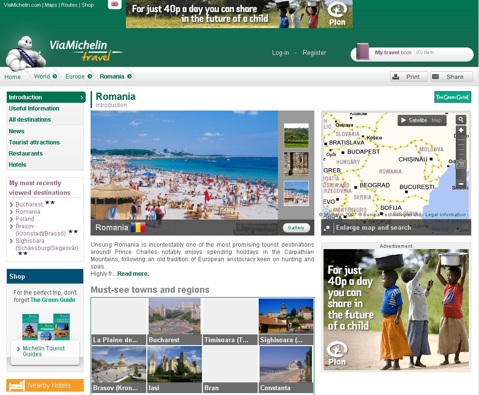 Unul dintre cele mai prestigioase ghiduri turistice din lume, Ghidul Verde Michelin, (Michelin Green Guide) prezinta – in editia sa de Europa – , Romania ca destinatie turistica, alaturi de tari precum Franta, Spania, Germania sau Marea Britanie. Pentru prima data, prestigiosul ghid a inclus pe lista oraselor europene din 2011 si Bucurestiul, oras care beneficiaza de o prezentare complexa, cu bune si cu rele, acesta reusind totusi sa obtina doua stele din trei posibile.