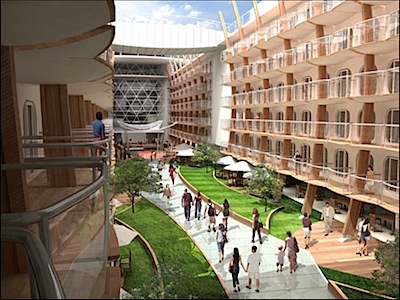 Dincolo de numarul impresionant de pasageri pe care il poate gazdui, vasul de croaziera, care apartine celor de la Royal Caribbean, gazduieste 26 de restaurante, cinematografe, sali de sport, teatre, cazinouri, o biserica si numeroase cafenele si spatii special amenajate pentru distractie.