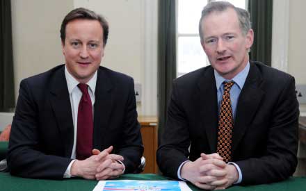 (Prim-ministrul Marii Britanii, David Cameron (stanga) si Ministrul Turismului, John Perose)