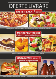 Pizza Hut Delivery propune clientilor sai noi oferte speciale, incepand cu data de 8 noiembrie 2011. Noile oferte sunt adaptate diverselor tipuri de persoane; astfel, pentru cei sociabili, mereu inconjurati de prieteni, PHD a pregatit un meniu pentru sapte persoane, cu doar 99 lei, compus din 3 pizza la alegere, 3 antreuri la alegere si 4 litri de bauturi racoritoare. Pentru cei singuri, PHD a pregatit o alta oferta speciala: cu 20 de lei mananci pe saturate paste Tuscani si orice salata din meniu. Iar pentru cei romantici, PHD „face serile mai dulciâ€. Pentru orice meniu compus din antreu, salata si pizza medie, primesti doua deserturi gratis.
