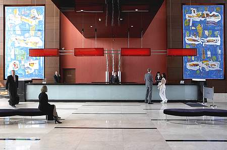 5. Hilton Varșovia Hotel and Convention Center (Varșovia, Polonia) Hotelul Hilton este situat în inima Varșoviei, deține 314 camere distribuite pe 27 de etaje. În barul „Axis” clienții se pot delecta cu o vastă selecție de vodka poloneză și cocktailuri colorate. Restaurantul „Meza” oferă preparate culinare tradiționale poloneze și variate preparate din numeroase culturi gastronomice.